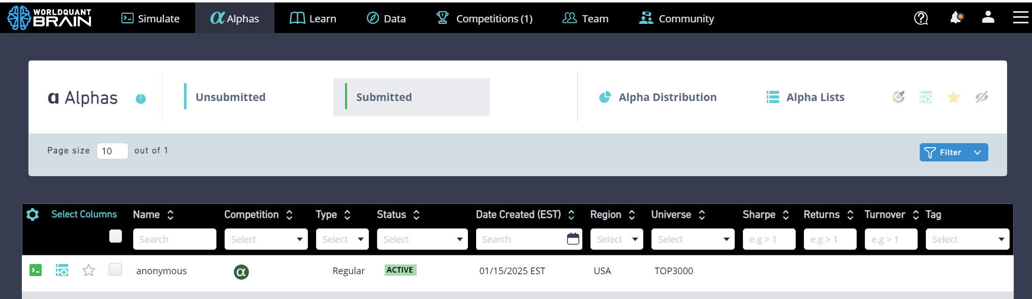 1.必做1:至少成功提交1个Alpha,展示截图